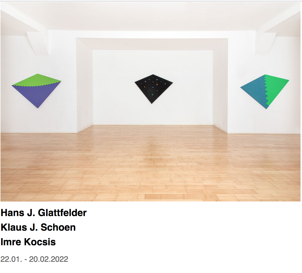 Ne manquez pas dans votre tour de Suisse de visiter la nouvelle exposition temporaire présentée par le Kunsthaus d’Interlaken sous le titre “Konkret”. À côté d’artistes concrets classiques tels que G. Honegger , V. Loewensberg, C. Graeser et K. Gerstner, figurent les oeuvres de Hans Jörg GLATTFELDER et Rita ERNST.